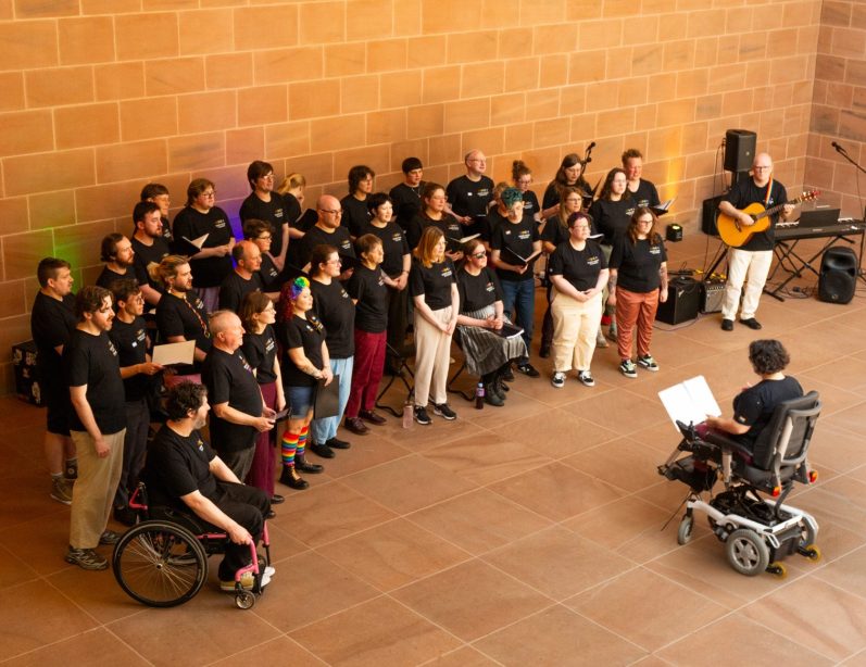 We are a community choir for all members of the LGBTQIA+ community, based in Glasgow.